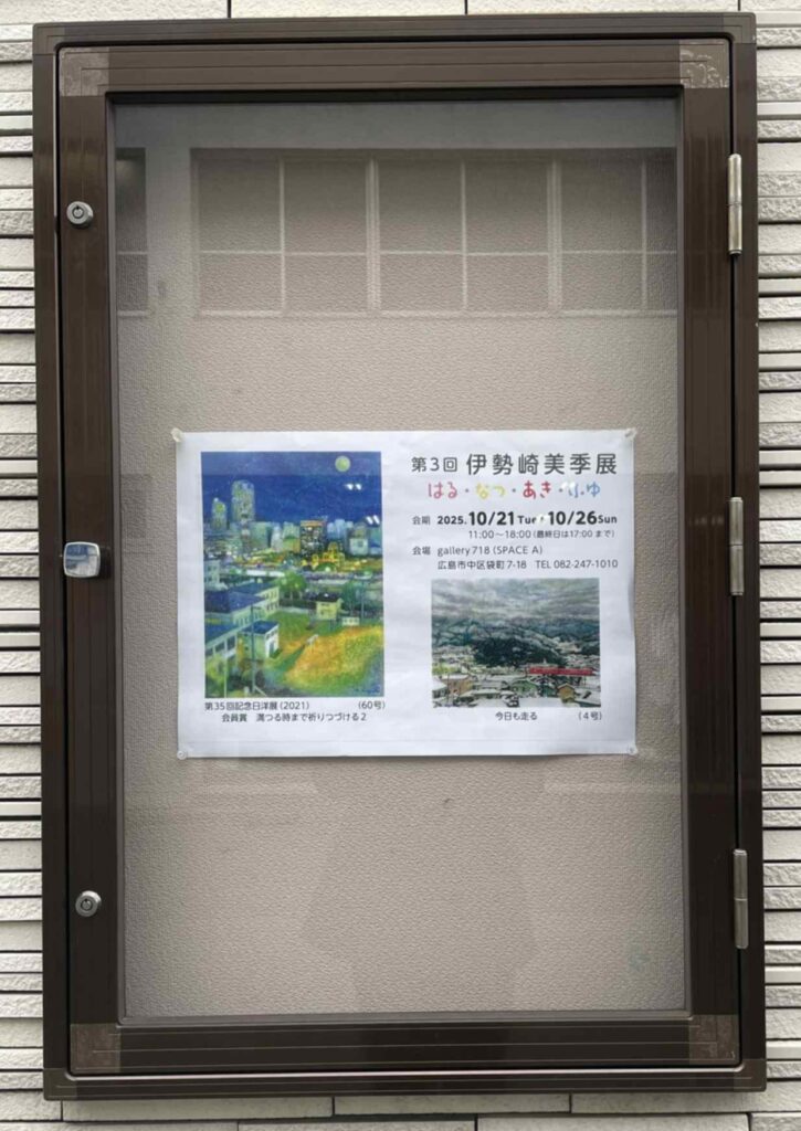 第3回伊勢崎美季展はる・なつ・あき・ふゆ会員の展覧会, 展覧会レポート 会期 2025年10月21日(火)~10月26日(日) 時間 1:00~18:00 最終日は17:00まで 会場 gallery718(SPACE A) 所在地 広島市中区袋町7-18 さらに画像を見る