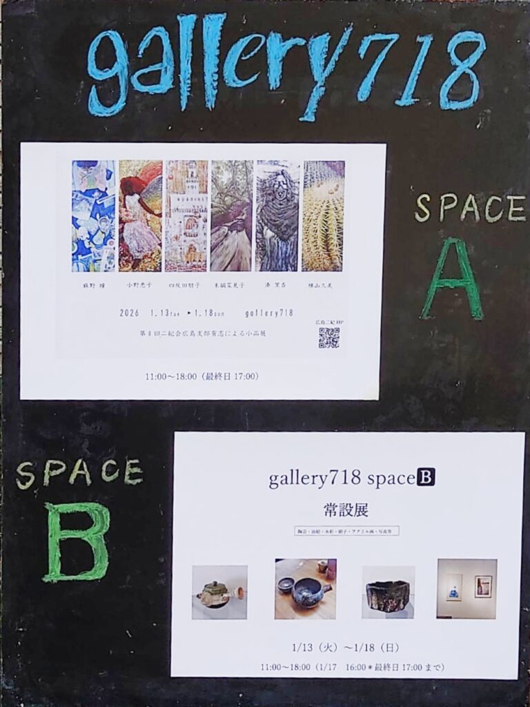 第8回二紀会広島支部有志による小品展会員の展覧会, 展覧会レポート 第8回二紀会広島支部有志による小品展 会期 2026年1月13日(火)~1月18日(日) 時間 11:00~18:00 最終日は17:00で閉場 会場 ギャラリー718 所在地 中区袋町7-18 さらに画像を見る