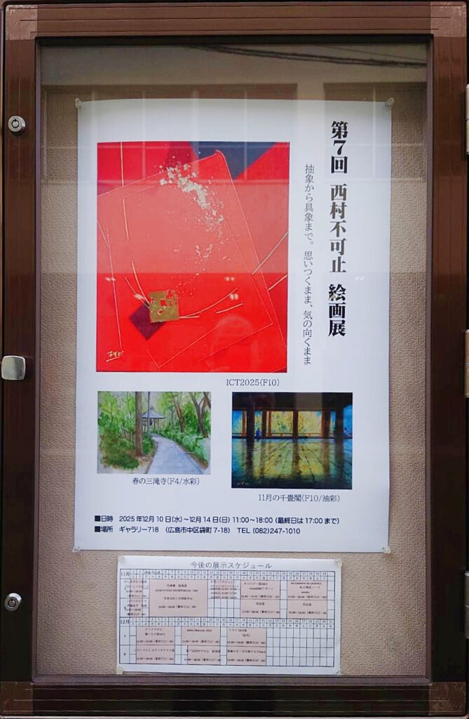 第7回西村不可止絵画展 会期 2025年12月10日(木)~14日(日) 時間 11:00~18:00 最終日は17:00 会場 ギャラリー718 所在地 中区袋町7-18 さらに画像を見る
