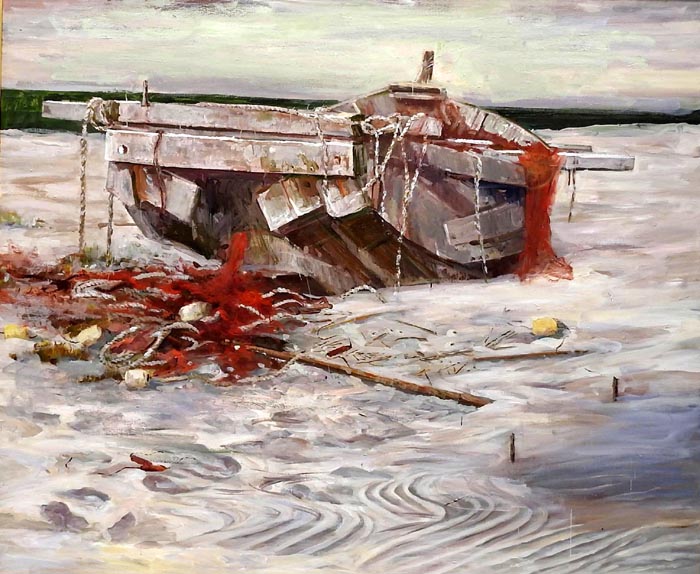 Okuda Yasuo 物には生命が宿っている。年月に自然に犯され、堪えている物の哀れさを、追求しつづけたい。 予感F100 油彩 静かにF8 油彩 花P8 油彩 尾瀬P8 油彩 第96回春陽会(2019) 防波堤 F1