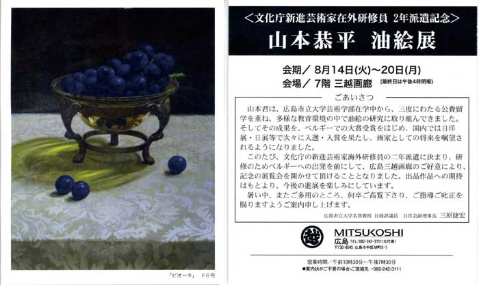 プロフィール 1984年10月 第27回新協美術展新人賞 1987年 8月 広島県美展 奨励賞‘93、’94の3回 1991年12月 現代美術交流展(北京市)‘04上海 ‘93、’02韓国と‘96、’98、‘00ドイツハ […]