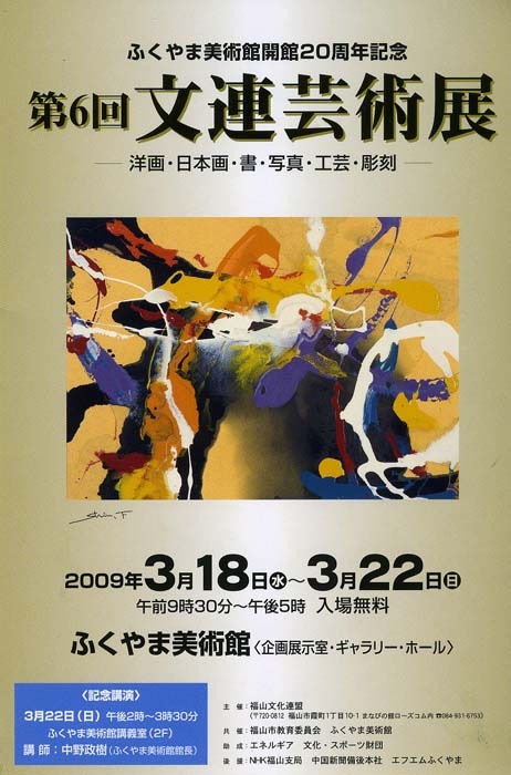 第6回文連芸術展 会場風景 会員の展覧会, 展覧会レポート / 2009年3月23日 第6回文連芸術展 会場風景 会期 2009年3月18日(水)~3月22日(日) 会場 ふくやま美術館 さらに画像を見る 第6回文連芸術展 会場風景 続きを読む »